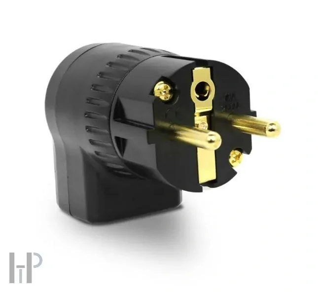 Kvalitní úhlový síťový konektor Schuko PS-24RA / pozlacené kontakty 24K zlatem / možnost nastavení úhlu výstupu kabelu z konektoru
