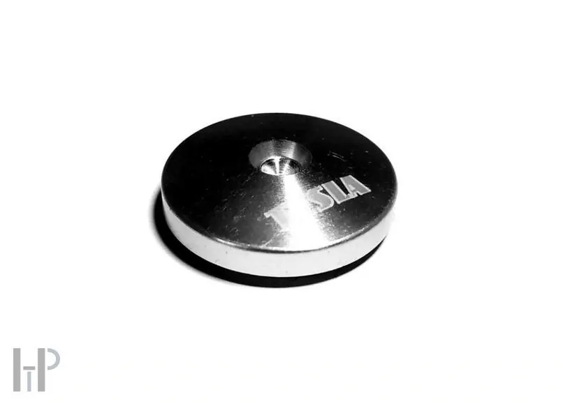 Při návrhu podložek TESLA Popular jsme zvolili českou cestu, tedy chytré konstrukční řešení. V praxi to znamená, že tělo podložky je složeno ze dvou oddělených materiálů, kdy kraj tvoří hliník v luxusní eloxované úpravě, zatímco samostatný uprostřed vlisovaný střed slouží pro uložení hrotu reprosoustavy. Spodní část je pak opatřena tmavou měkčenou podložkou chránící podlahy proti poškrábání.